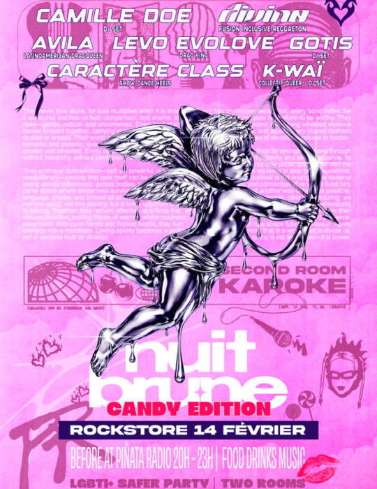 C’est ta soirée pour pécho ou pas 💋 Nuit Brune revient le 14 février, parce que la Saint-Valentin c’est aussi fait pour transpirer, flirter, danser, twerker en famille.
